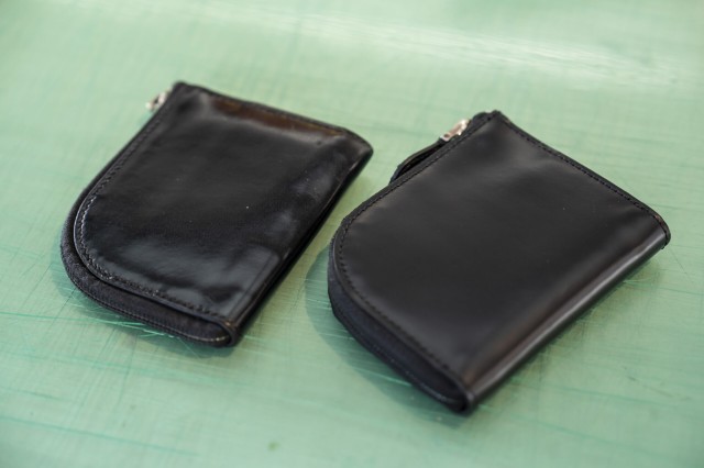 手で触ることが多い財布やキーケースなどの革小物は、毎日使うため手の皮脂や汚れが付着しやすい。あえて手の脂をこすり付けてツヤを出そうとする風潮もあるが、これも正しいお手入れとは言えないそう。「革に汚れが蓄積して現れるテカリは、革本来のツヤではありません。革の汚れや皮脂が付着した状態で革を磨くことによって、革表面がフラットになり、ツヤがあるように見えているだけなのです」