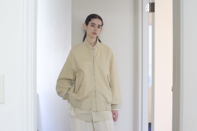 淡いマカダミアナッツ色が愛おしい、日本産カウレザーのフライトジャケット。ミニマルなデザインのなかに、立体的なポケットやゆったりと取られたリブ、上品なシルバーカラーのファスナーなど、細部へのこだわりが光る。ユニセックスで楽しめるシルエットは、ほどよいゆとりがあり、現代的なムードをさりげなく表現。レザーの柔らかな質感と控えめな光沢、表面に広がる繊細なシボが上品さを添える。時代を超えてどんなスタイルにも寄り添ってくれる逸品。
