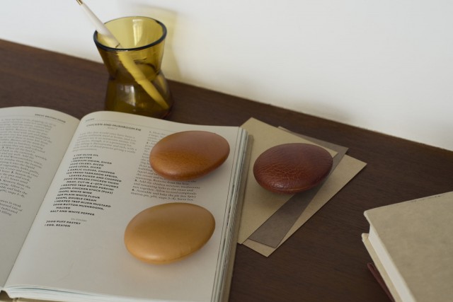 有機的なカーブを描く、レザー製のペーパーウエイト。2枚の革を貼り合わせ、つなぎ目を丹念に削ってフラットに仕上げることで、卵のようなつるんとした触り心地に。生成り、シボあり、シュリンクレザーの3ラインナップ。ナチュラルな色調で、デスク上のオブジェとしても存在感を発揮しつつ、手で握り締めれば癒やしを得られたり、名案が浮かんだりするかも!?