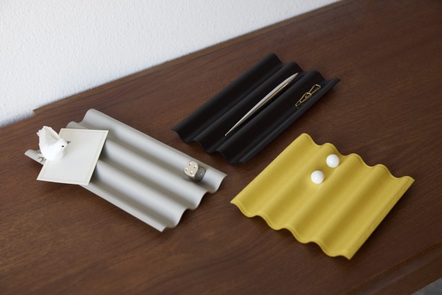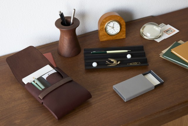 デスクトップに散らばったペンや小物、小さなアクセサリーなどをセンスよく整頓できるレザーのトレイ。兵庫県のタンナー、森表産業によるレザーを使用し、プラスチック製の波板を芯材に、傷や汚れに強いクロム鞣しの薄くなめらかな牛革を表面に密着させている 。革本来の風合いを生かしたマットな質感と、オブジェのような存在感で、デスクをさりげなくセンスアップしてくれる。