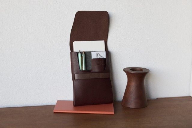 植物タンニン鞣し革に定評のあるタンナー、カナメによるブランドオリジナルの牛革は、コシ感と繊細さが特徴で、日本原皮を100%植物タンニン鞣しで仕上げたもの。1枚のレザーを折りたたむように仕立て、表から縫い目が見えないようデザインされた軽やかなスモールサイズのオーガナイザー。使うほどにしっとりとした上品なツヤが増していく 。ノートとペンを収納して、スマートにフィールドワークに出かけよう。